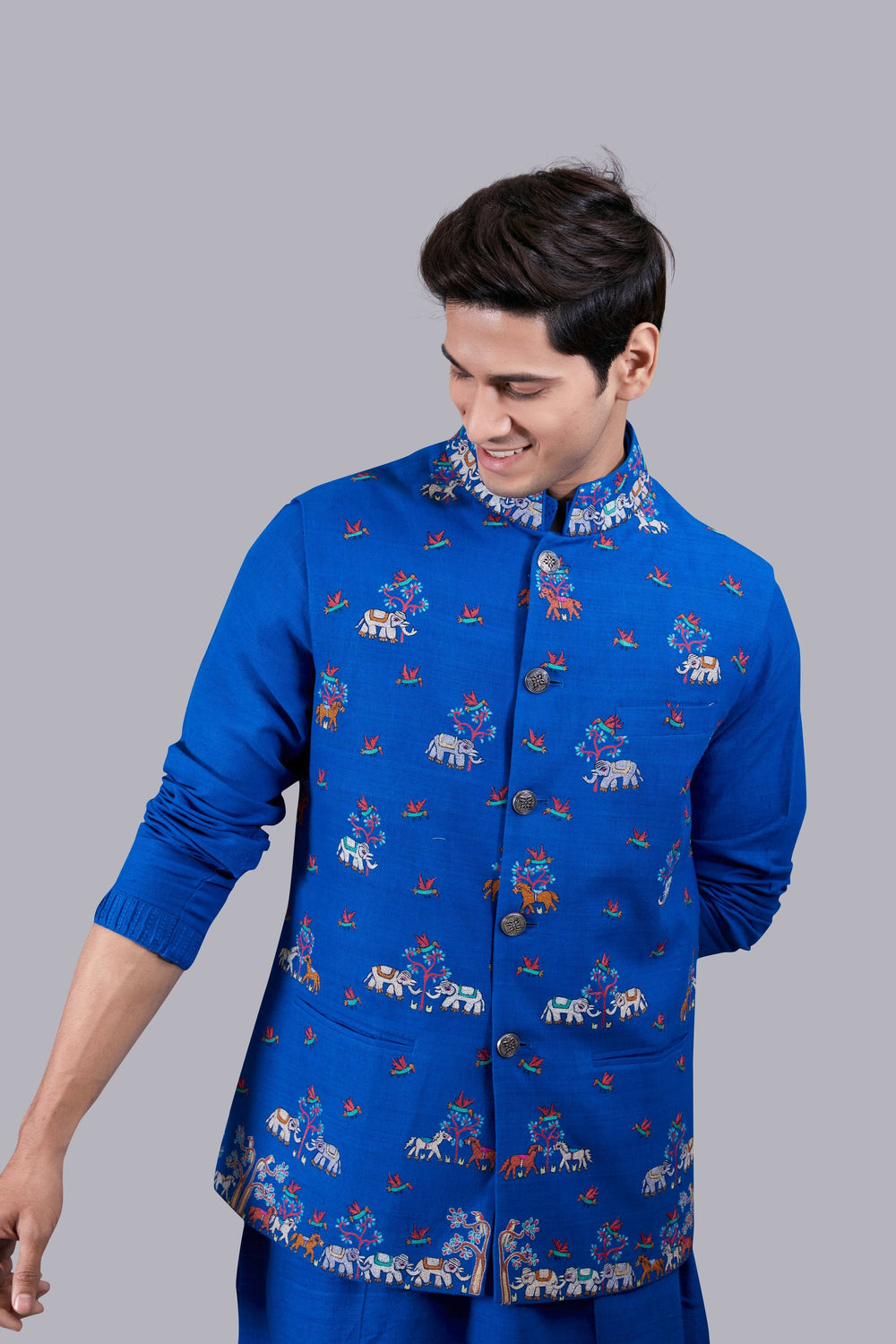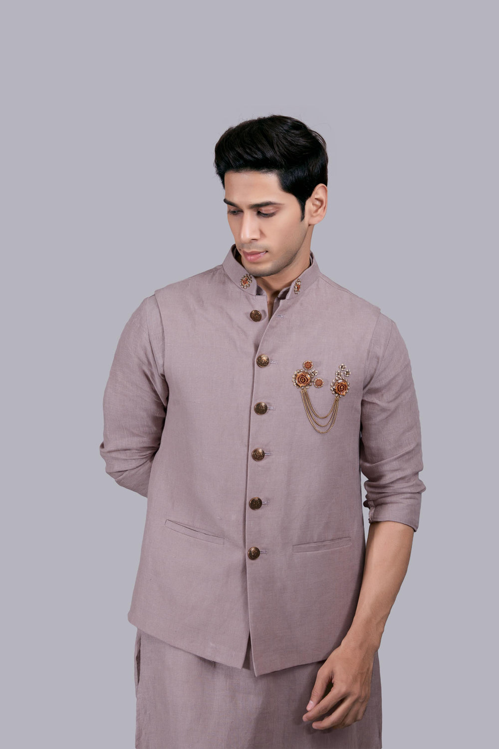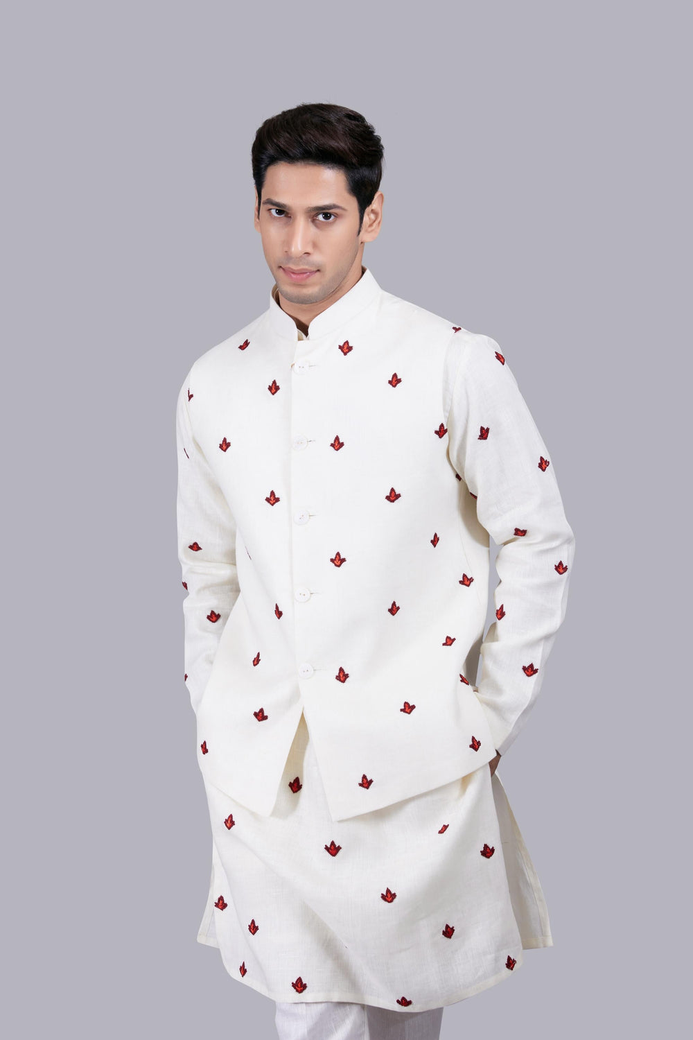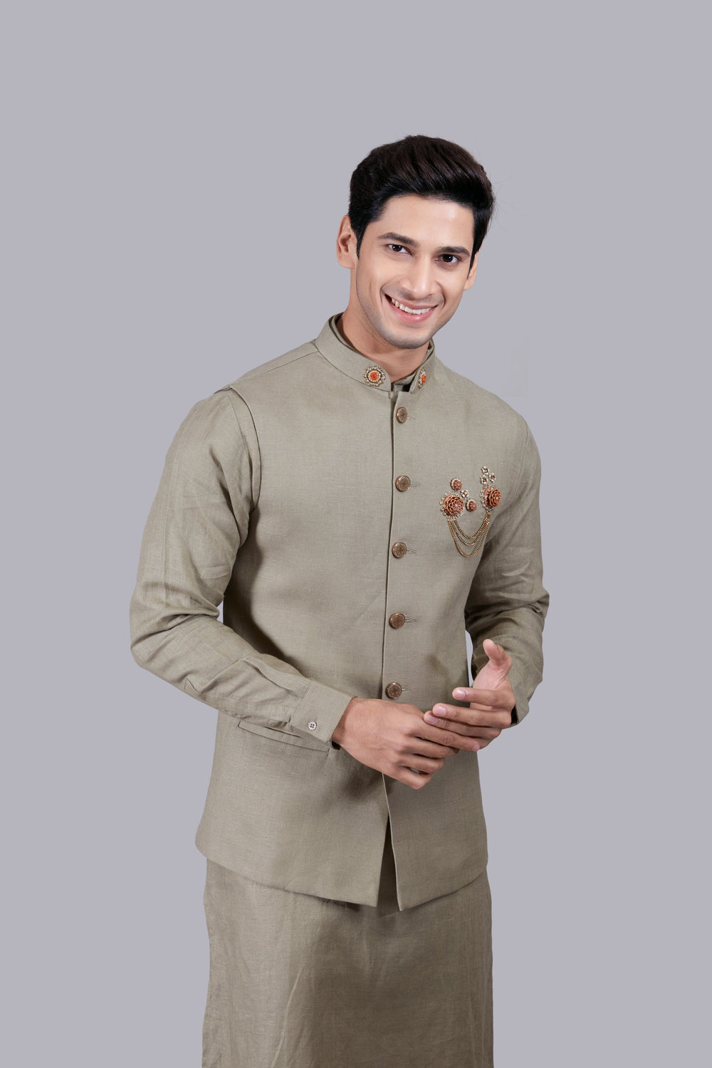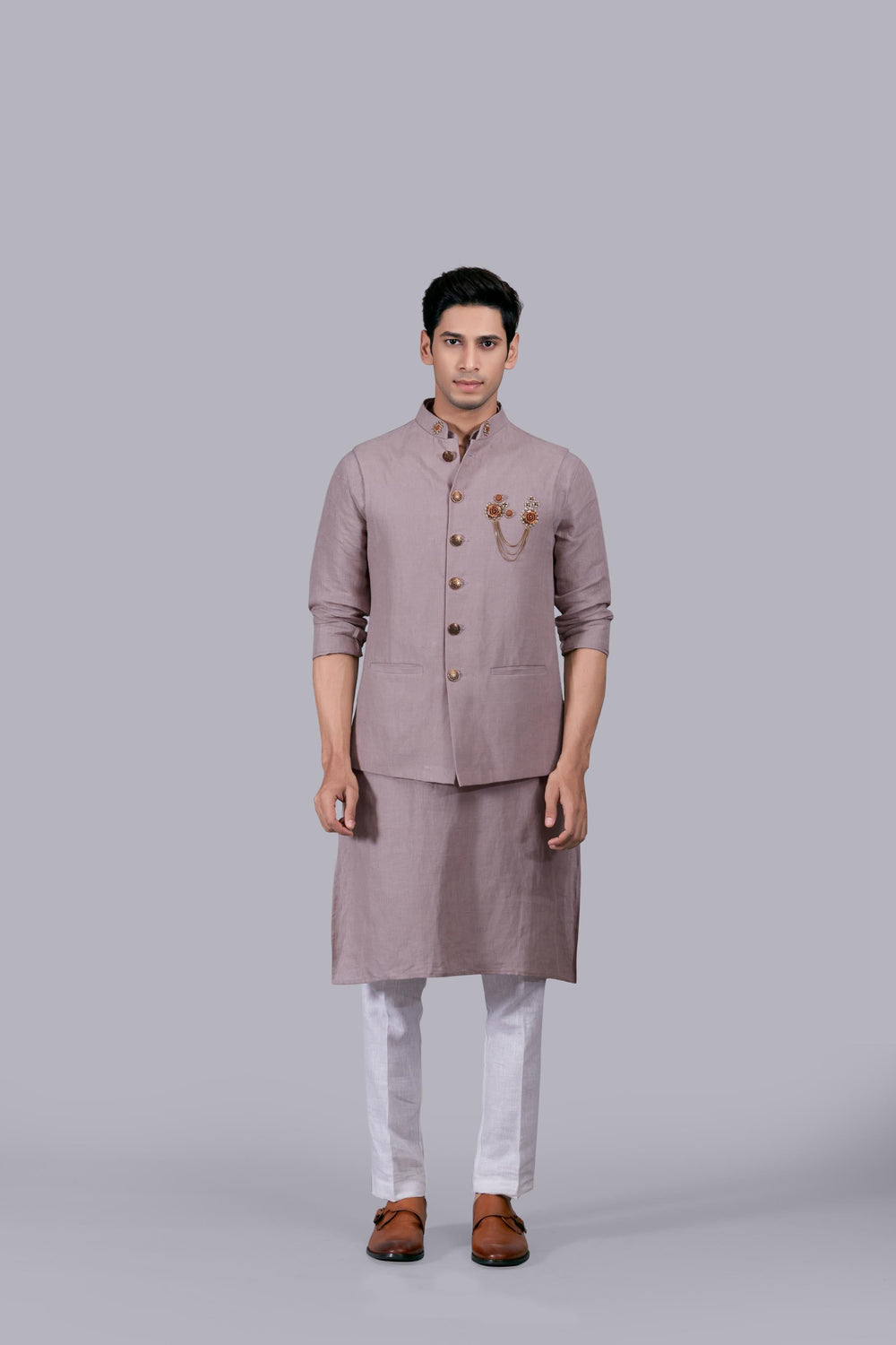 Pair your kurta with a beautifully tailored Bundi jacket to complete the look. A kurta with Bundi adds that extra layer of charm and tradition, perfect for creating an impressive look without overdoing it. Whether you’re the groom, a guest, or hosting a family event, this set helps you stand out for all the right reasons.