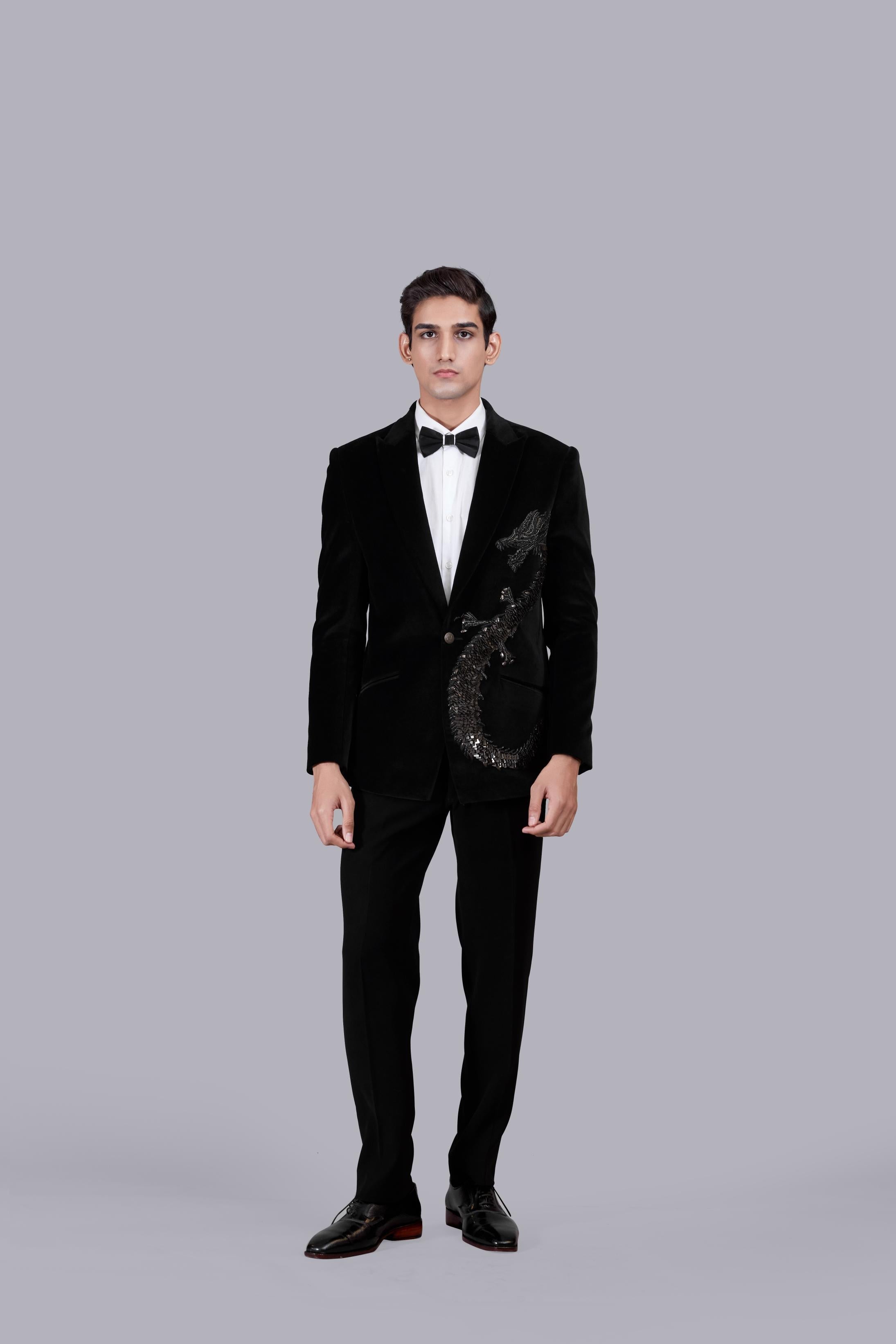 BLACK ITALIAN COTTON VELVET ZARDOSI WORK SUIT