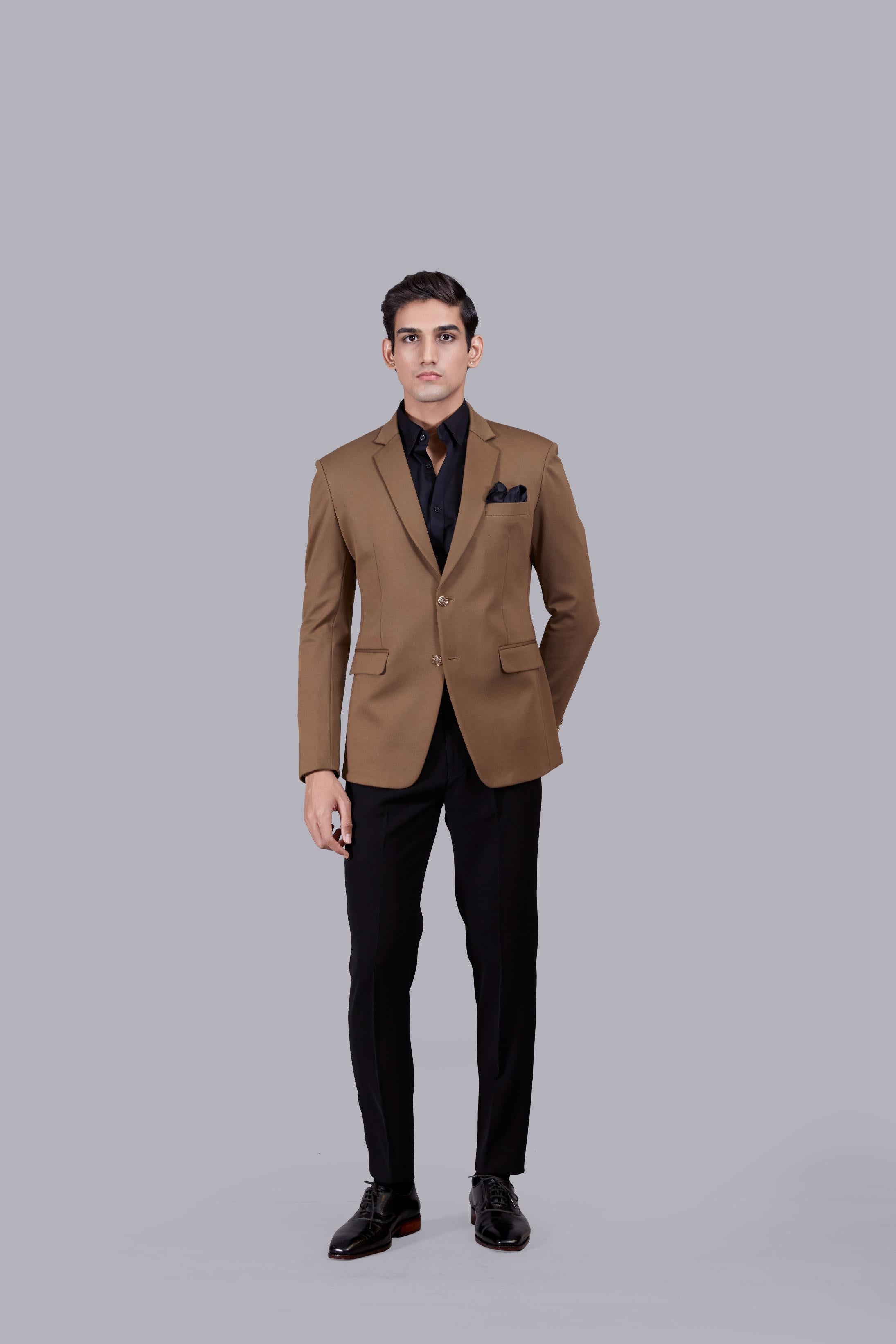 • BROWN KNITTED LYCRA PLAIN BLAZER